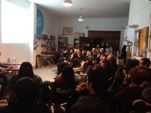 A continuació, fou el torn de Josep Ma. Busqueta, pastisser de professió i membre del Seminari d’Economia Crítica Taifa. Bsuqueta va desgranar encara més les entranyes del sistema capitalista i com la seva pròpia gènesi, el seu propi funcionament, converteix persones en mercaderies a mans dels capitalistes. No va tenir cap problema en afirmar que ser una persona exitosa en la nostra societat passa per ser una mercaderia, és a dir, formar-nos amb tots els estudis, títols i idiomes possibles perquè després ens contractin (ens comprin). A més, va afirmar que els governs de torn ja fa temps que són titelles a mans de les grans institucions internacionals com l’FMI, etc., de manera que els centres de poder s’han desplaçat, el centre de decisió ja no és el govern, ni és escollit.